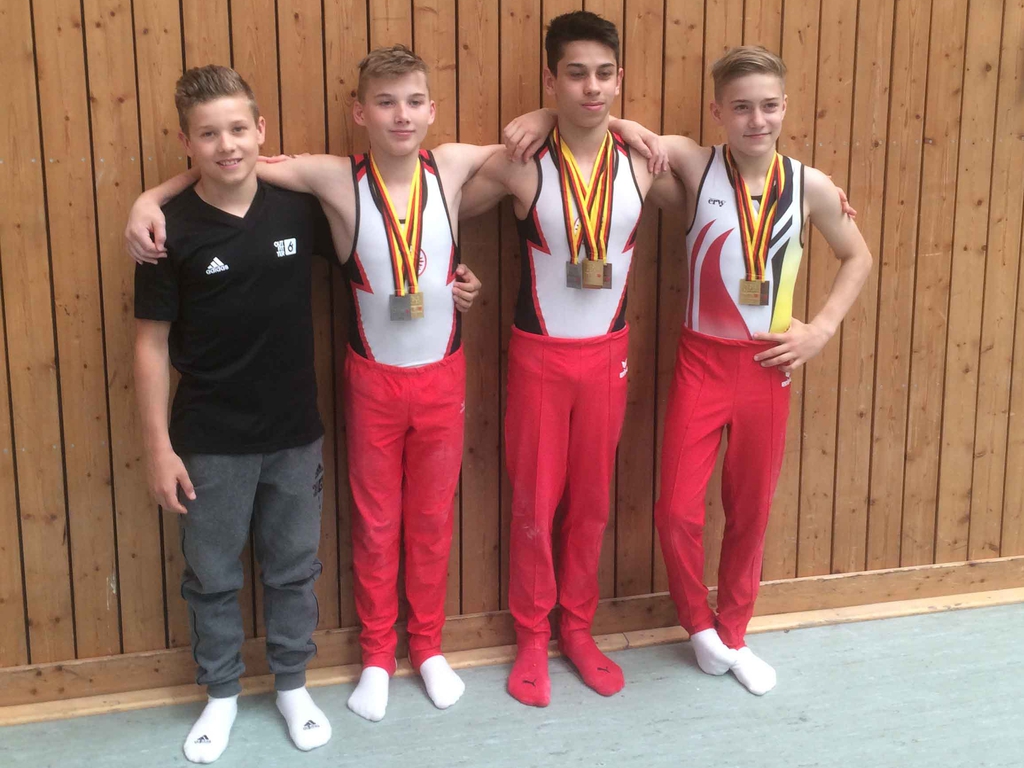 Bei den Gerätefinals am Sonntag verbuchten die 13- und 14-Jährigen weitere Medaillen: Aslan Ün war für alle Finals qualifiziert, musste allerdings aufgrund von Fußproblemen auf Boden und Sprung verzichten. Er sicherte sich jedoch den Titel am Reck, den zweiten Platz erreichte er am Barren und gewann Bronze am Pauschenpferd und den Ringen.Daniel Roubo erwischte einen sehr guten Tag und sicherte sich den Titel des Deutschen Meisters am Sprung. Am Boden wurde er mit dem dritten Platz belohnt, am Barren wurde er Siebter. Niclas Eckhard erreichte in einem starken Starterfeld am Pauschenpferd den siebten Rang.