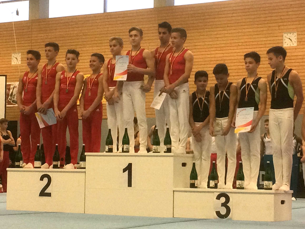 Die Mannschaft mit Jonathan Weber (Platz 7 im Mehrkampf), Andrej Krylatov (Platz 17 im Mehrkampf), Julius Wiegand (30. Platz) und Maxim Golyschkin (33. Platz) kam am Ende des Wettkampfes auf dem 4. Rang. Alexios Dimitriadis lag in der Einzelwertung knapp hinter Maxim und wurde (34.). Luan Aronica kam als zweiter HTV-Einzelstarter auf Platz 53. Der Hessische Turnverband möchte sich bei allen Beteiligten (Turner, Eltern, Kampfrichter, Trainer und Betreuer) bedanken, die zu diesem Erfolg beigetragen haben.